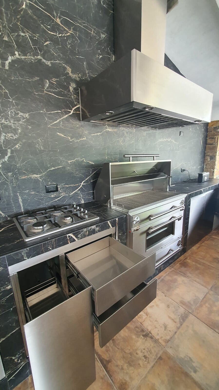Integración de Lujo: Ya sea que sueñe con un asador estilo argentino, un horno de pizza artesanal o una estufa lateral para guarniciones, lo integramos con acabados de lujo y durabilidad, desde piedra natural hasta acero inoxidable.